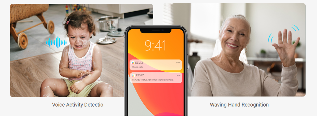 The camera alerts you if the noise level suddenly changes – whether your baby cries or a siren breaks out. Your family members can also simply wave at the camera to initiate a video call to your phone.